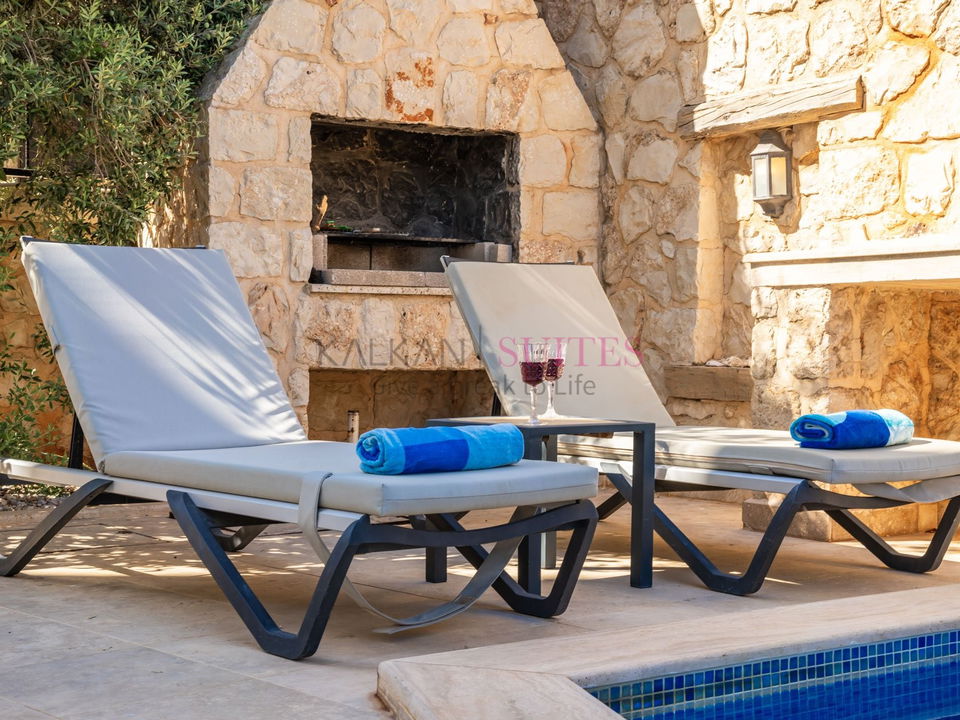 Salon : içerisinde oturma grubu, televizyon, klima, sehpa, tuvalet, bulunmaktadır. Havuz terasına çıkış yapılabilmektedir.